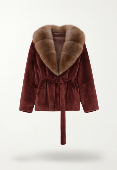Dámský kabát z umělé norky s límcem z pravého polárního lišky 23165-10