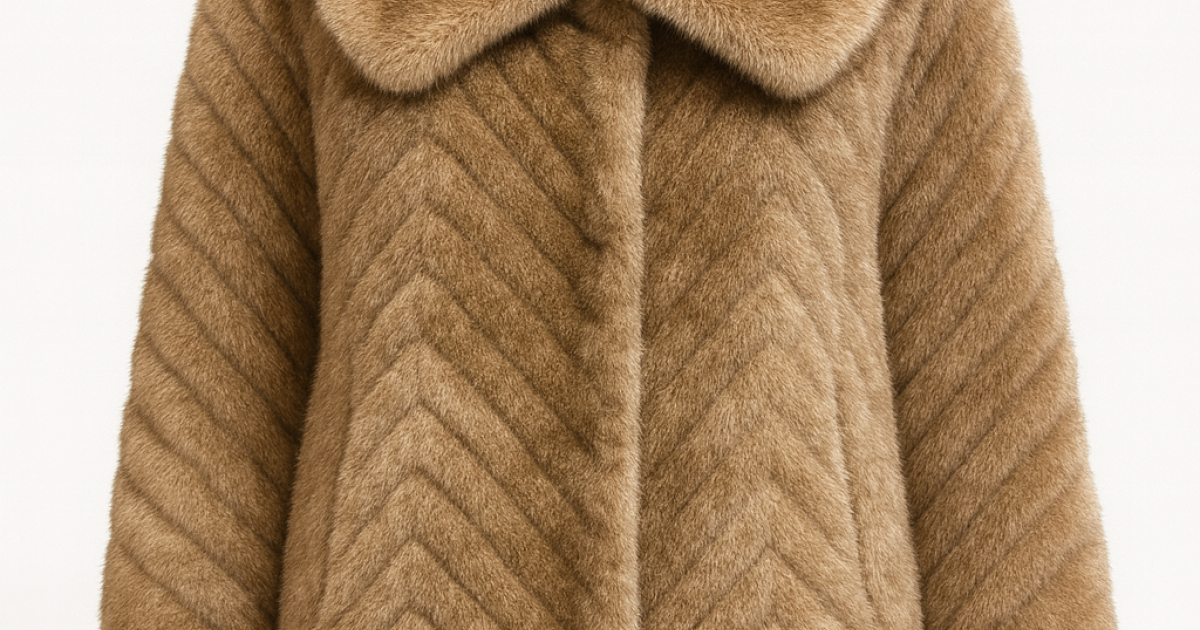Kožich s imitací norky – velmi teplý, ideální na zimu. Model se širokým límcem, zapínání na háčky, dvě boční kapsy. Rovný střih s mírným zaoblením dolů dodává eleganci.
